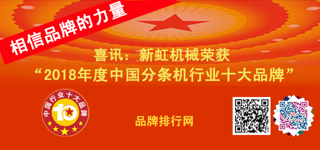 喜訊:新虹機械榮獲2018年度中國分條機行業(yè)十大品牌